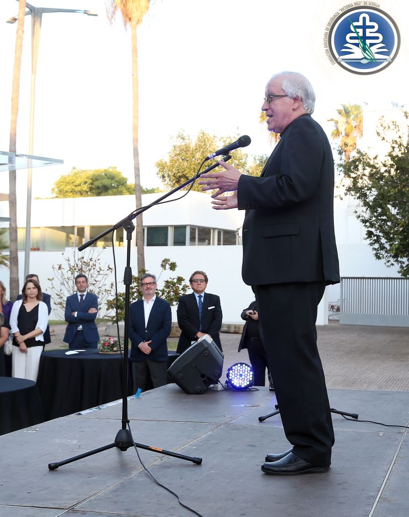 También el párroco de la Parroquia Ntra. Sra. de Belén de Tomares, Fernando Emilio Borrego Ojeda, ha agradecido al Excelentísimo Sr. Arzobispo, “su presencia, dedicación y servicio a ésta su Fundación, aquí nos tiene para seguir remando mar adentro”, así como a todos los profesores a quienes ha deseado “un merecido descanso y la mirada puesta ya en el nuevo curso, destacando de forma especial, a Antonio Macías, quien a partir de ahora será el nuevo Gerente de la Fundación Diocesana de Enseñanza “Victoria Díez”, dejando la dirección del Colegio Diocesano San Bernardo tras 22 años al frente, sucediéndole en el puesto José María Jiménez”.